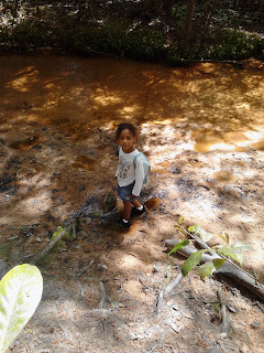This time my sister's oldest was going to a birthday party. Since she lives 30 minutes out of town we thought it would be fun if we hung out together. It was a beautiful day and we were both broke so we decided on a free, outdoors activity. In our little city there are 1200 acres of forest and wetlands in the middle of it. Isn't that odd? Yes, but it's awesome! We get cell reception in the middle of the woods. So, we decided to go hiking. My mom was in town as well so we took their grandma along as well. So fun! Here are some pics from our 2 mi adventure in the woods. Collin and my 2nd oldest niece are both in first grade and have been learning about habitats in science. This was a great opportunity because the route we took was through wetlands and forest habitats. We were able to talk about book and make it slightly educational as well. ;)